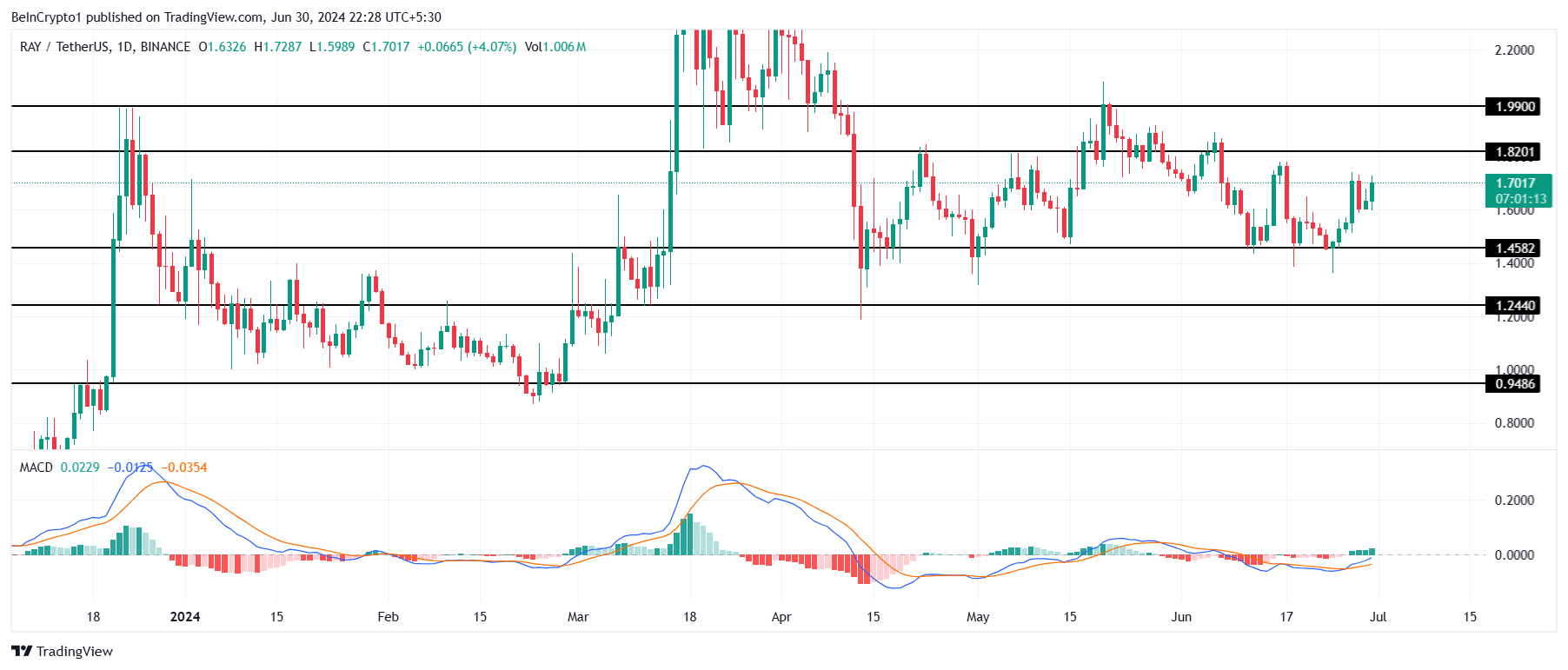 これに基づいて、RAYは統合ゾーンをブレイクアウトする可能性に注目しています。上昇の勢いはアルトコインを1.99ドルに押し上げ、この障壁の突破にも役立つだろう。