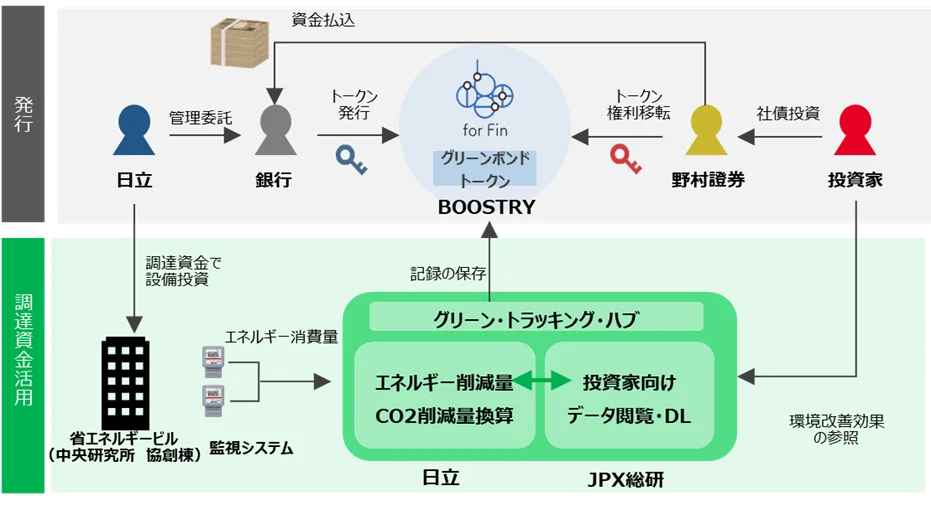 日立製作所、JPX総研、野村證券、BOOSTRYの4社は17日、IoTやブロックチェーン基盤などのデジタル技術を用いた「グリーン・デジタル・トラック・ボンド(デジタル環境債)」の発行に向けての協業を発表した。発行条件については決定次第、発表される。