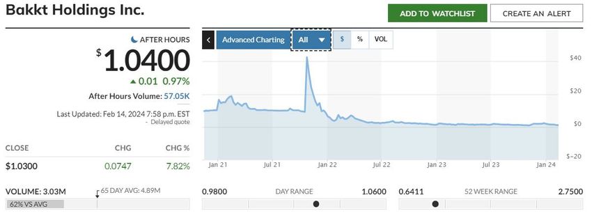 Bakktの株価(BKKT)は14日の時間外取引で1.04ドルに達し、7.8%の上昇で反発した。