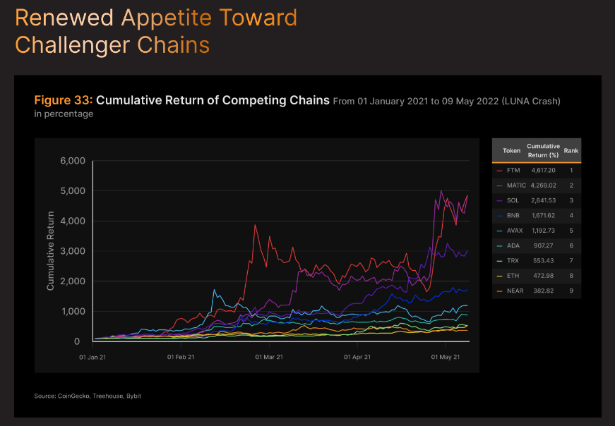 ソラナ(SOL)のようなチャレンジャーチェーンも注目を集めており、彼らのトークンはETHのような既存のプレイヤーを凌駕している。これは、2021年の上昇を彷彿とさせる。この変化は、取引機能の強化や分散型アプリケーションを約束する代替ブロックチェーン技術への関心と信頼が広がっていることを示している。これは特にゲームやAIの分野で顕著である。