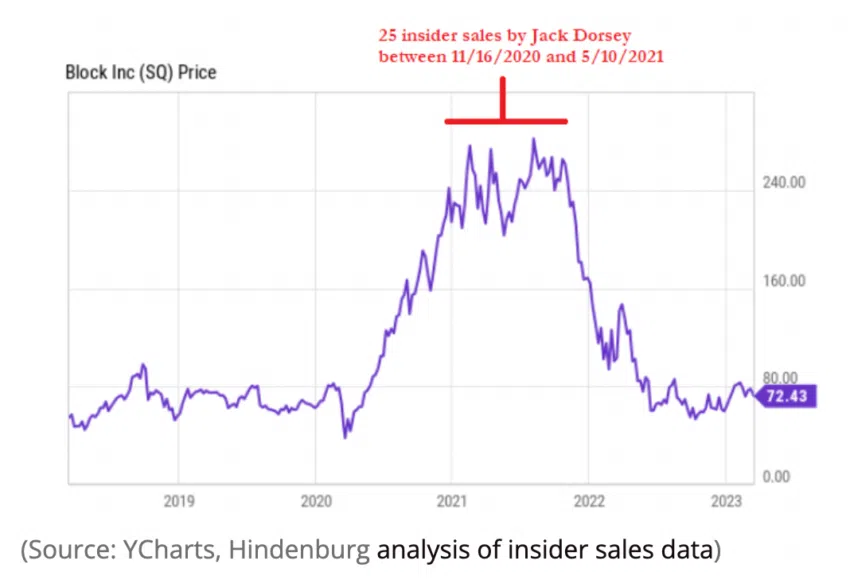 さらにHindenburgは、ジャック・ドーシーCEOを含むインサイダーが、10億ドル以上の株式を売却したと訴えている。調査レポートは、「概ね、Blockのインサイダーは、2021年初頭にかけて株価が上昇した絶好のタイミングで、売却規模を増やした 」と書いている。