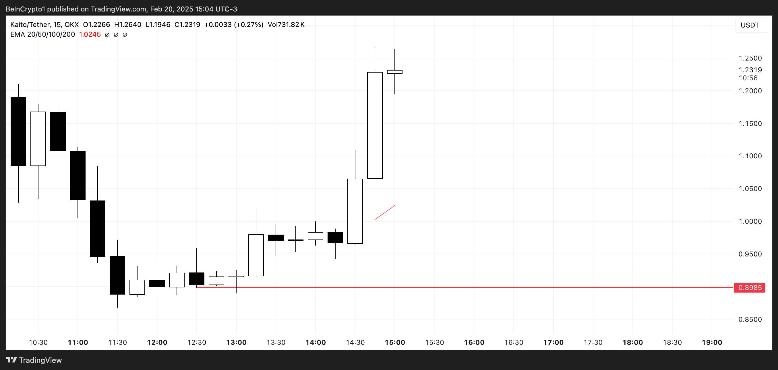 このシナリオが発生した場合、KAITOは0.89ドルのサポートを試す可能性がある。そのレベルが突破されれば、価格は0.8ドルや0.7ドルを下回る可能性がある。