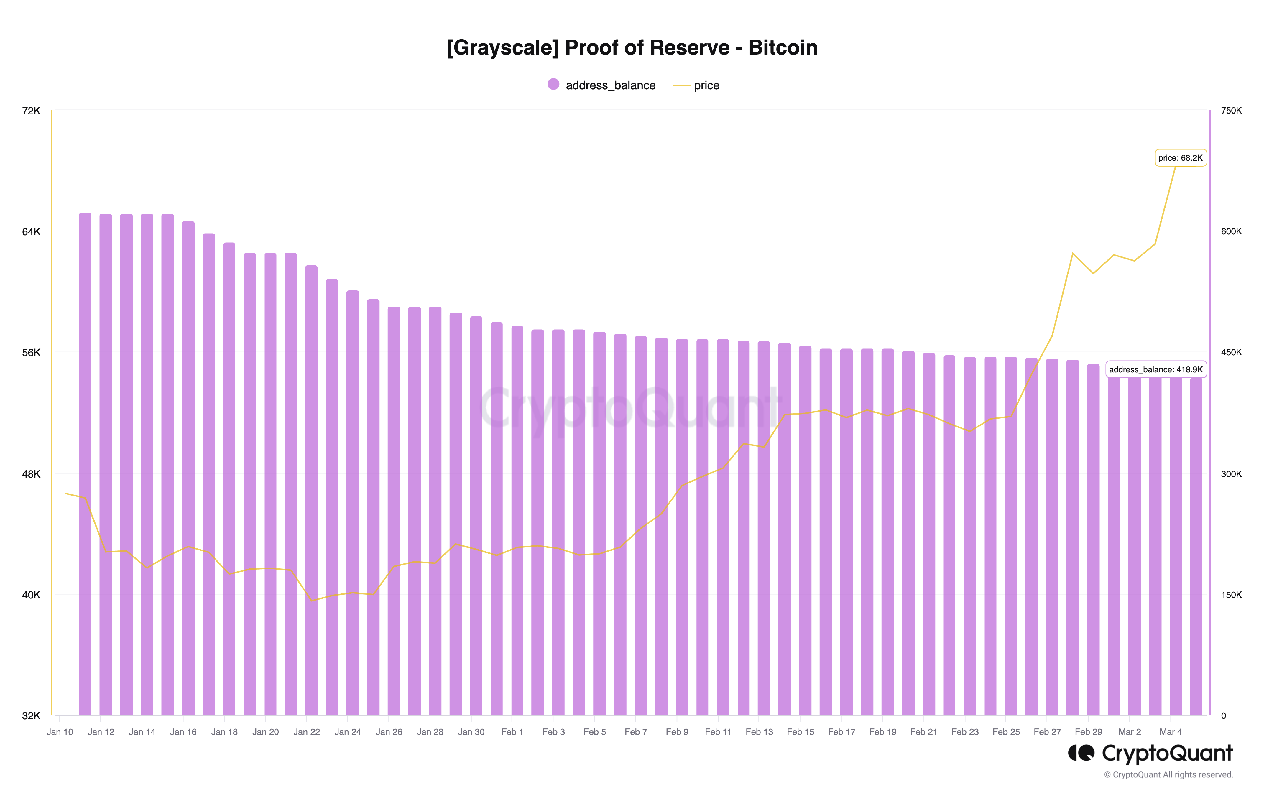 しかし、このようなイノベーションの中で、グレイスケールのビットコイン・トラスト(GBTC)はETF化以来、100億ドル近い資金流出という困難に遭遇している。Farside Investorsのデータによると、火曜日にビットコインが史上最高値を更新したため、GBTCから3億3200万ドルの流出があった。