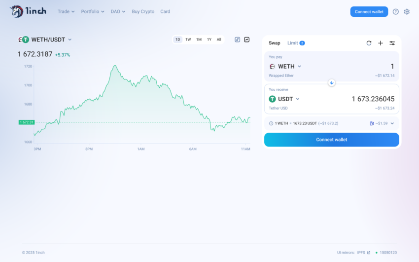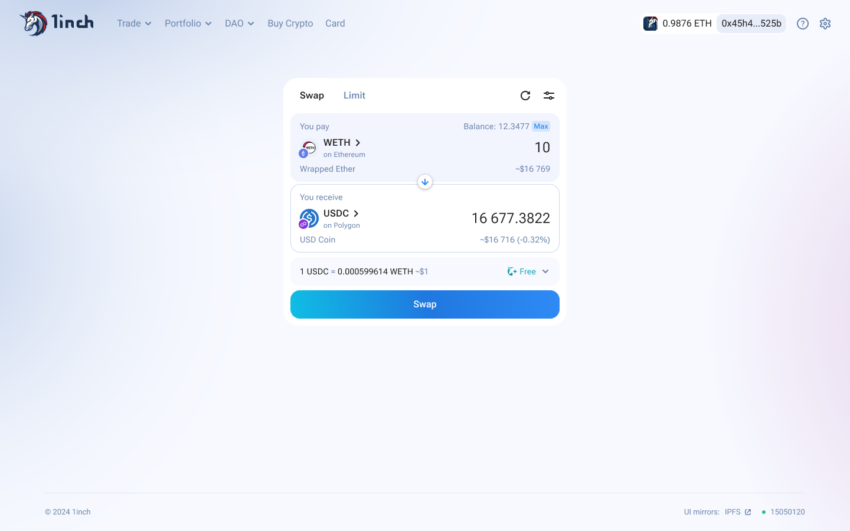 1inchは、暗号資産の取引をより効率的かつユーザーフレンドリーにすることを目的とした、主要なDeFiアグリゲーターです。そのSwap(スワップ)製品は、多くのソースからの流動性を組み合わせ、最適なトークン価格を実現し、異なるブロックチェーンを横断する取引など、複数の取引方法を提供します。