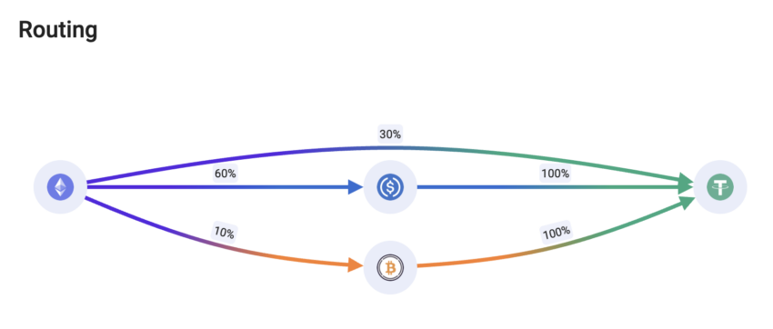 AdvancedモードではClassic(Pathfinder)スワップの実行や詳細な設定の調整が可能です。ClassicスワップではPathfinderアルゴリズムを使用して、注文を流動性ソース間で分割し、UIで詳細に表示します。