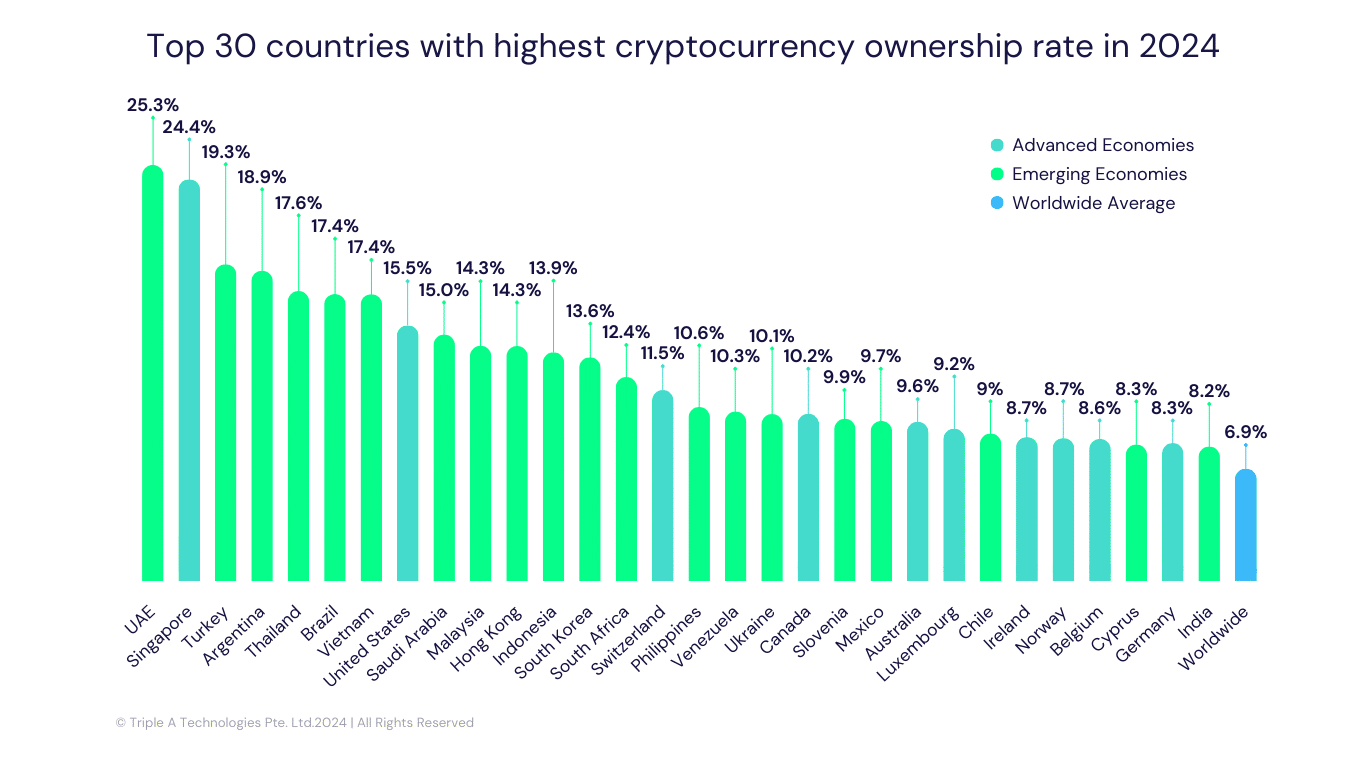 世界全体でも2024年の暗号資産保有者数が約5億6千万人(世界人口の約6.8%)を記録しており、今後さらに拡大する見通しです。