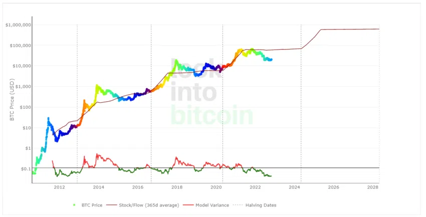ストックフローモデルにより、ビットコイン価格はこれまで半減期には上昇していることが明らかになりました。さらにこのモデルは、その後の半減期を追跡するのに役立つと同時に、半減期中の適正価格の予測も示します。