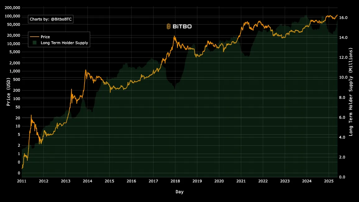 2017年末、2021年初頭、2024年末〜2025年前半など、長期保有者が大量に売却を始めると価格がピークアウトしています。