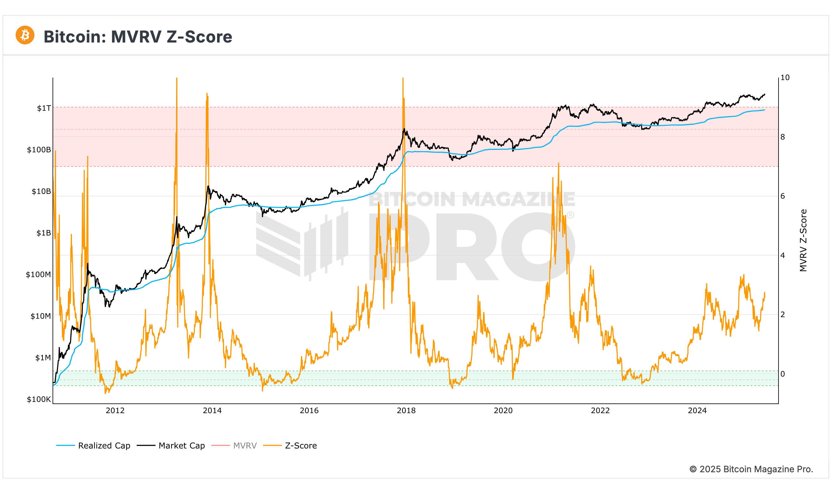高いMVRV(Z>7〜8)は市場の過熱サイン