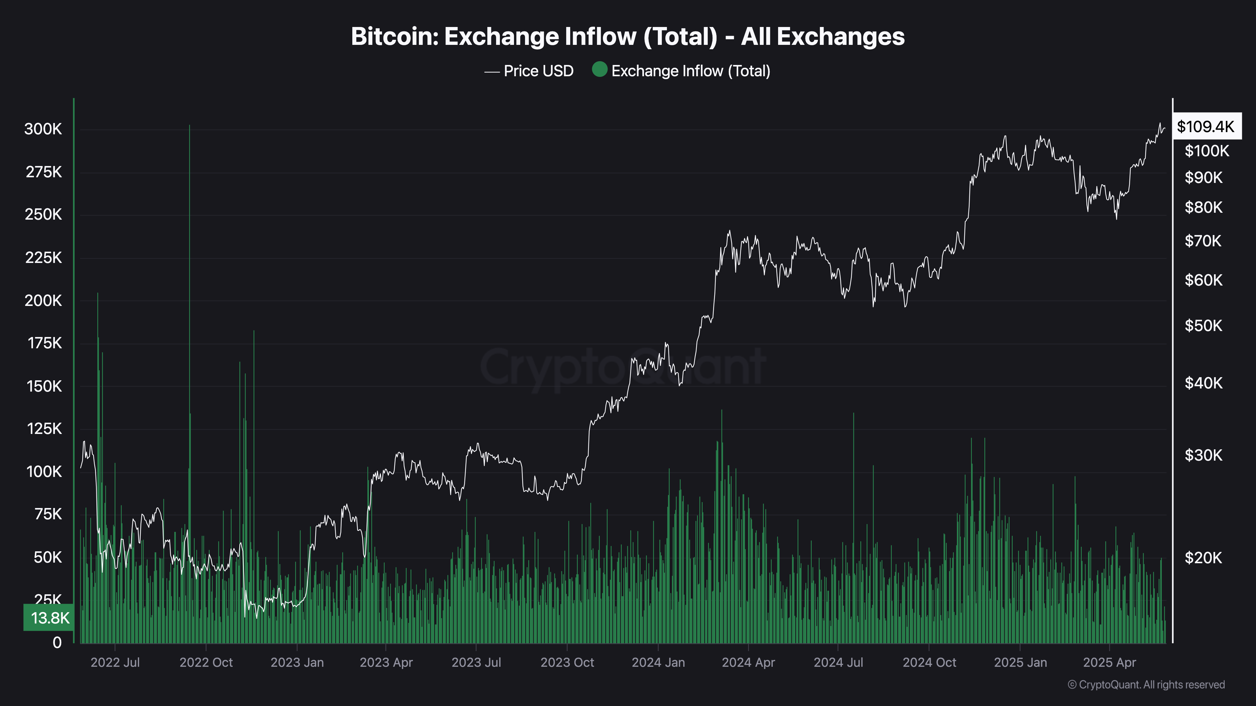 大量のBTCが取引所に送金されると、売却が増え価格下落を招きやすくなります。CryptoQuantによると、「取引所へのBTC流入量が増えることは、大半の場合、価格下落をもたらす弱気サイン」と明言されています。