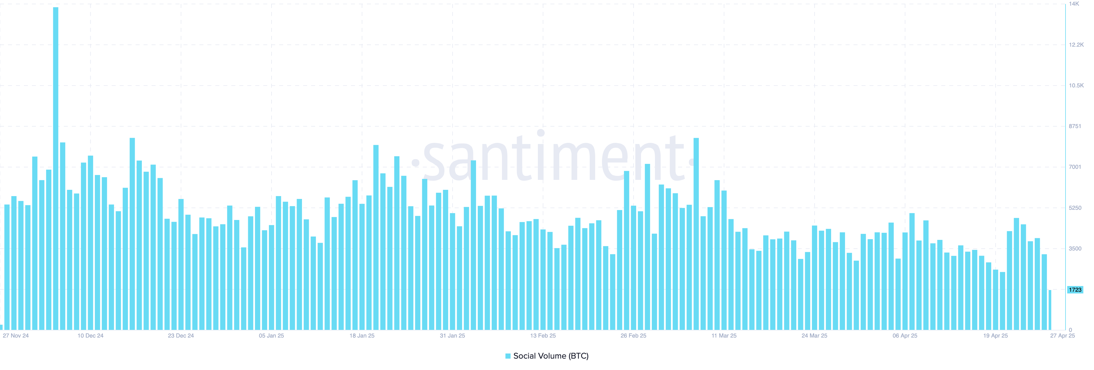 2025年4月、Santimentのセンチメント指標が強気領域に入り「ビットコインは9万ドル到達間近」との投稿が溢れましたが、その後価格は上値が重くなり調整しました。