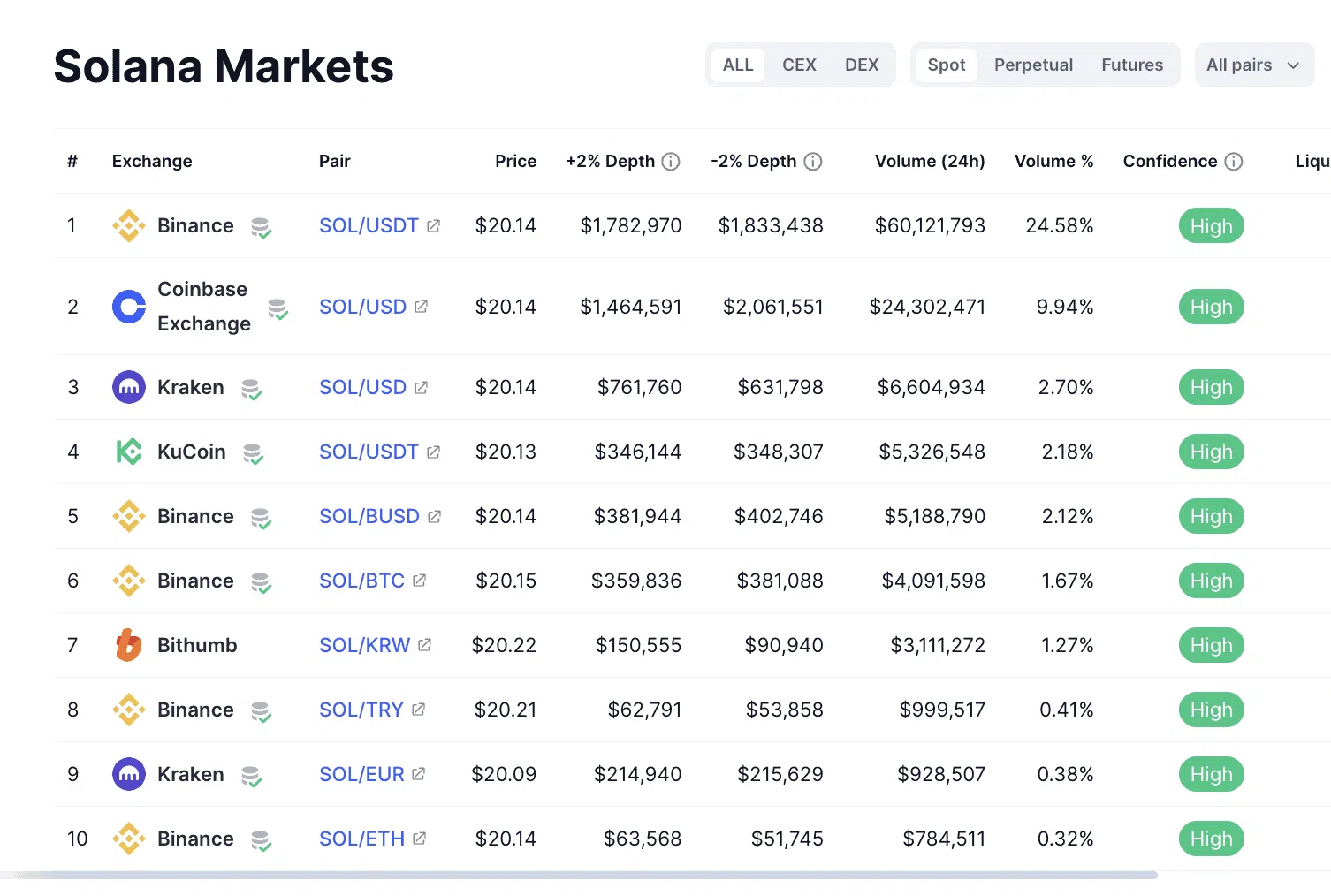 - ソラナ取引は、ほとんどの主要な暗号資産取引所で実行可能
