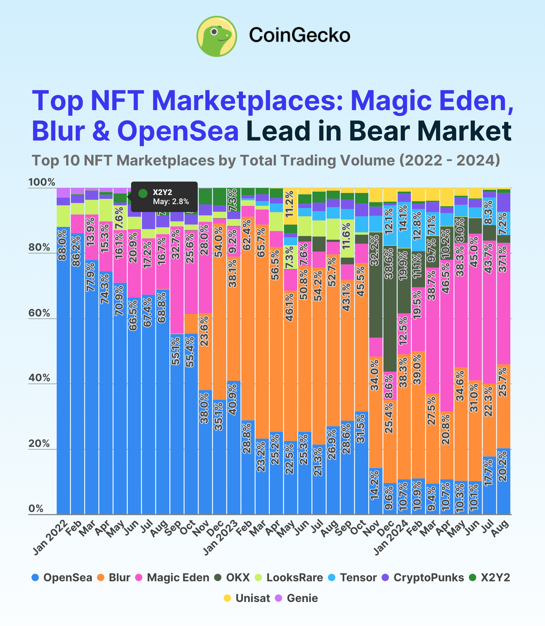 これらの要因が複合的に影響し、OpenSeaはBlur、Magic Eden、OKX NFT Marketplaceといった競合に対し、市場シェアを徐々に奪われていたと考察できます。