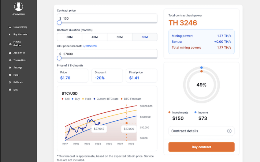 また、便利なモバイルアプリ、ウェブサイト上のマイニング契約計算機、日次決済、詳細な取引履歴といったサービスも提供しており、信頼性が高く使いやすい投資プラットフォームを求めているユーザーには最適な選択肢です。