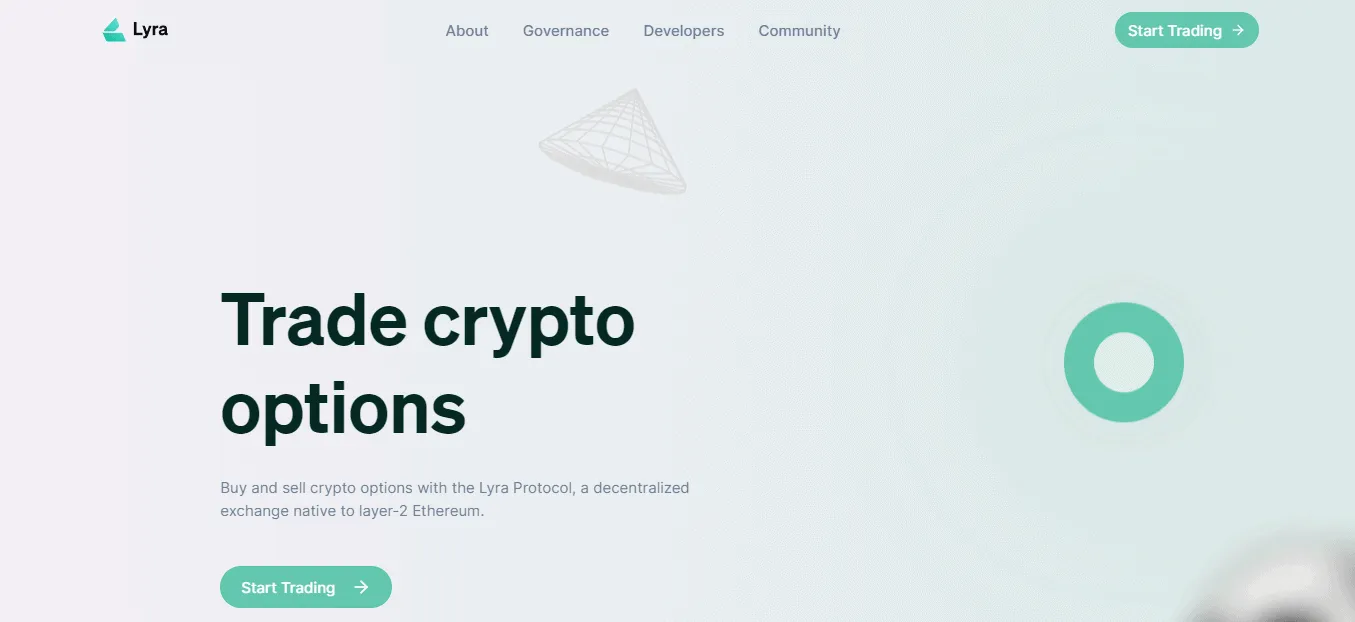 Lyraは、暗号資産オプション自動売買業者(AMM)として初めて登場したプラットフォーム。トレーダーは流動性プールに対して暗号資産オプションの売買を行うことができます。このプロトコルはレイヤー2Ethereum(OptimismとArbitrum)上に構築されているため、取引手数料が低額というメリットがあります。