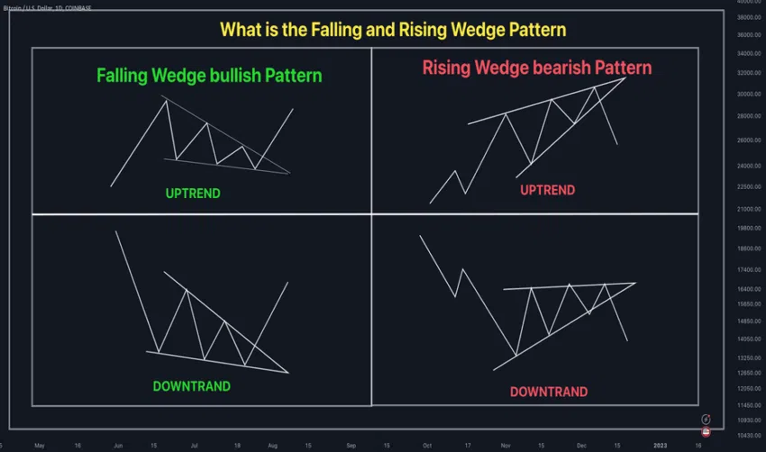 暗号通貨取引におけるウェッジは、継続または反転パターンのシグナルになります。ペナントと同様、2本の収束するトレンドラインがあります。しかし、ウェッジは、両方のトレンドラインが上向きまたは下向きに進んでいるかで判別されます。