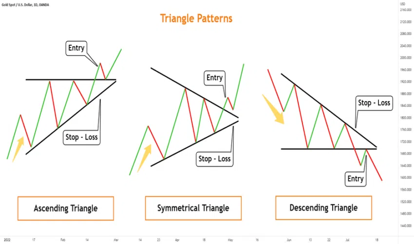 均衡型三角持ち合いは、2本のトレンドラインが互いに交差して形成され、ブレイクアウトが予想されます。このパターンは、明確な方向性を持たない相場で出現します。この場合は上昇、下降トレンドは存在しません。