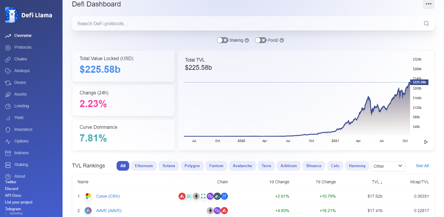 関連記事:DeFiプラットフォームのTVLを追跡するDefiLlamaとは何か?