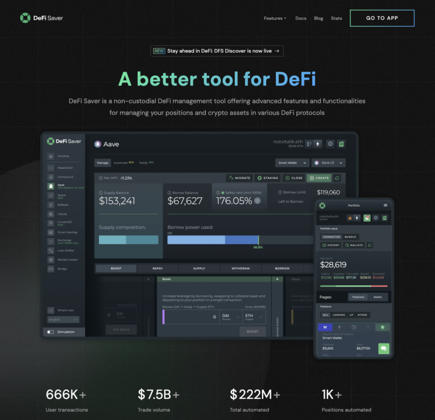 DeFi Saverを使用すると、Aave、Maker、Compound、Morpho、Sparkなどでポジションの作成、変更、自動化が可能です。一方、スマートウォレットシステムは、レバレッジ、返済、資産のスワップなどの複雑な操作を単一のトランザクションで実行します。