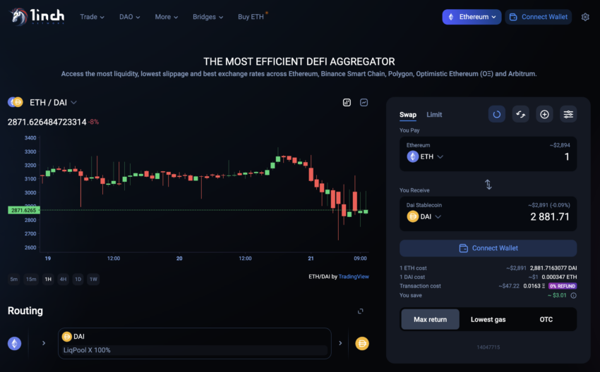 - 複数の流動性ソースを横断し、コスト効率がよく安全なスワップを提供する1inchアグリゲーションプロトコル