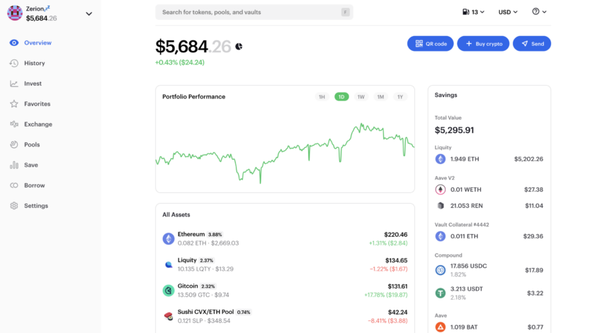Zerionは、ユーザーが自分のDeFiポートフォリオを一元管理し、成長させることができるツールです。「DeFiインデックス」や「DeFiブルーチップ」などのプロダクトがあり、ユーザーはDeFiトークンの取引やチェーンをまたいだ資産移動、NFTコレクションの管理をすべて一箇所で行えます。