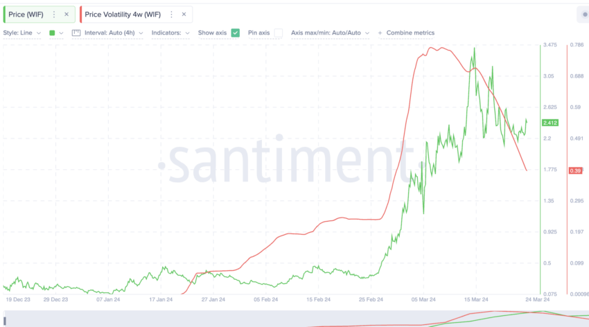 Solana主導のWIFの価格変動は減少傾向にあり、これは通常、価格の上昇を後押しする要因となります。