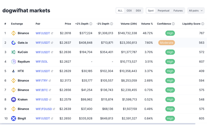 もしこの投機的資産に賭け、WIFが重要なレジスタンスレベル$2.51を突破する前に購入したい場合、以下の安全かつ信頼できる取引をサポートする推奨取引所リストがあります。ミームコインは非常にボラティリティが高い資産クラスであり、利益は保証されていないことを覚えておきましょう。