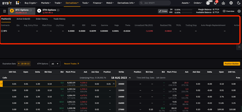 購入/売却価格を選択し、その後数量を入力して注文を確定してください。注文は個人用ダッシュボードの「アクティブ注文」セクションに表示され、オプション契約のリストの上に表示されます。