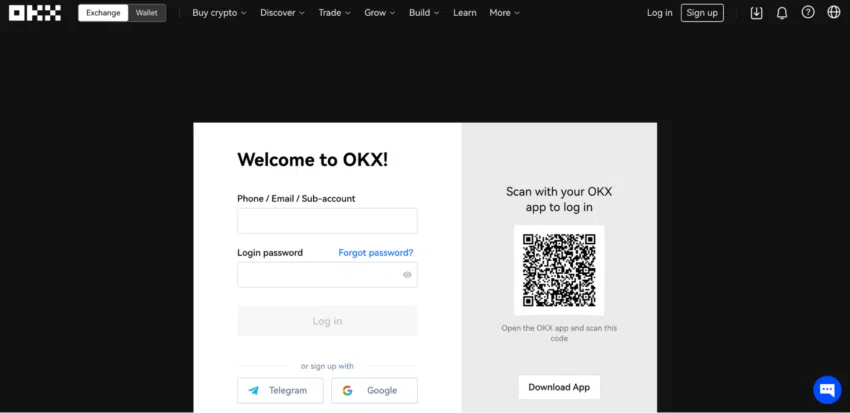 OKXモバイルアプリをインストールしている場合は、認証情報を使用してログインするか、QRコードを使用してログインすることができます。