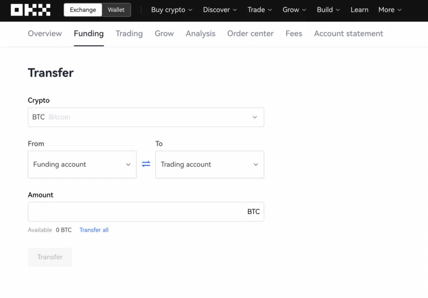 ステップ3:取引を開始する前に、資金調達用ウォレットから取引用ウォレットに資金を移動しておくことをお勧めします。