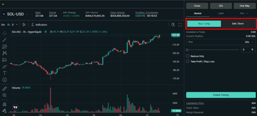 ハイパーリキッドでの取引は非常に簡単で、一般的な取引インターフェースとほとんど変わりません。
