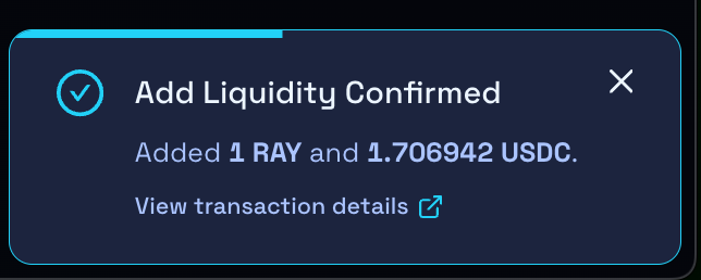 Raydiumでは各プールに等価の2トークンを預けることで、プールの取引手数料(0.22%)を収入として受け取れます。手数料収入はプール内で再投資され、自動でLPトークンの価値が増加します。