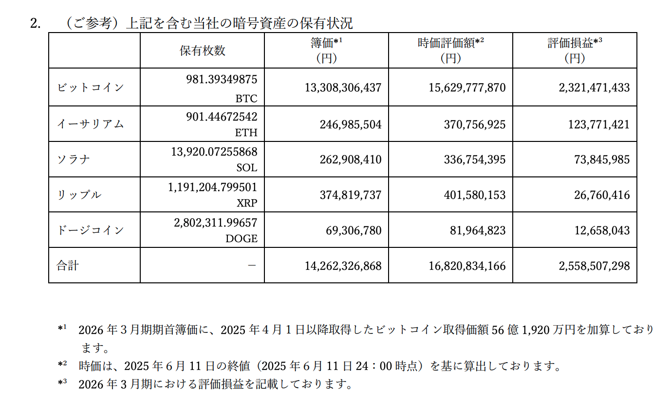 リミックスポイントは、2024年9月からキャッシュ・マネジメントの一環として暗号資産を保有開始。メタプラネットほど全面的ではなく、複数の暗号資産に分散投資する方針です。