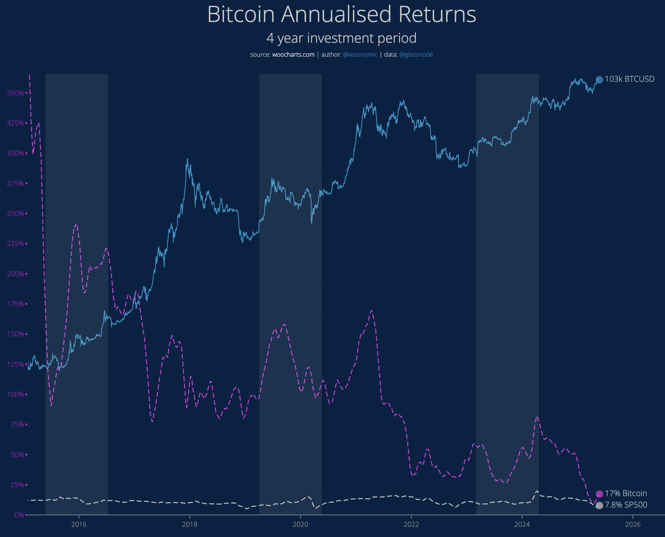 それでもウー氏は、「CAGRが低下してもビットコインは他の多くの公開取引資産を上回る」と強調しています。