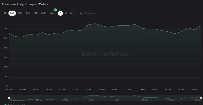Uniswap trading volume and fees in December: Token Terminal また、2023年3月および12月にかけて、アクティブユーザー数は過去30日間で6.5%増加しており、これはユニスワップエコシステムとその多様な機能に対する人気の高まりを示している可能性があります。