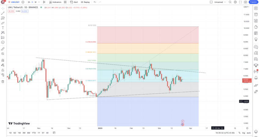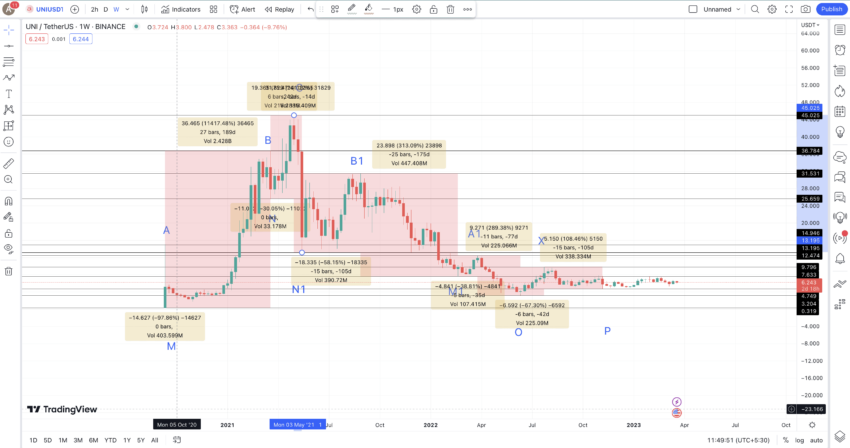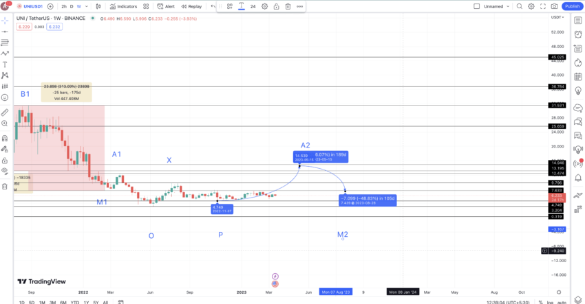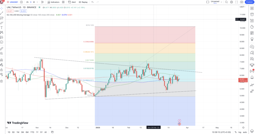 なお、以前のテクニカル分析では、2023年にUNIが15ドル以上へ上昇する可能性があると予測していました。