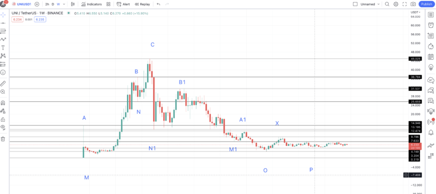 覚えているでしょうか?私たちは以前、7.53ドルがUNIにとって重要なレジスタンスラインになると予測していました。実際、UNIはこの価格を突破できず、高値は7.37ドルに抑え込まれました。以下がその分析の一部です: