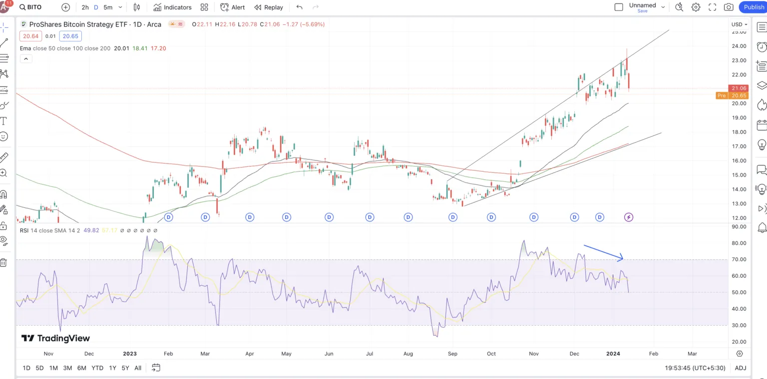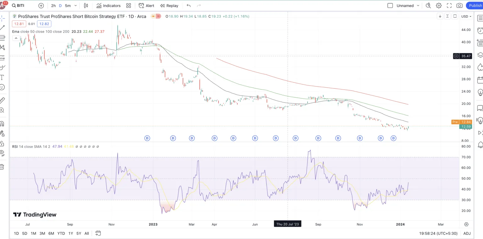 しかし、過去の実績を見ると、ProShares Bitcoin Strategy ETFは2023年だけで137.33%、2024年1月16日時点で1年間で110.27%のリターンを記録しています。 これは、基盤となる資産が価格上昇に反応すれば、ETFは良い投資選択肢となり得ることを示しています。