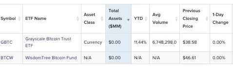 - WisdomTree Bitcoin Fund (BTCW)