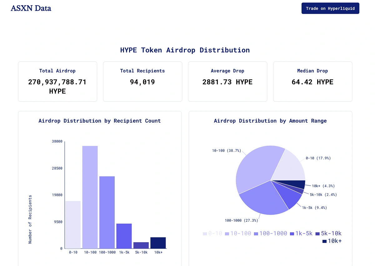 ハイパーリキッドは、2024年11月29日に94,000人のユーザーを対象にエアドロップを実施しました。このエアドロップは、業界内で最も成功したと評価されています。