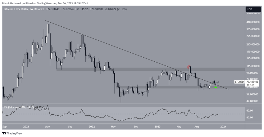 それにもかかわらず、LTC価格は10月に再び上昇を開始し、2週間前にトレンドラインからのブレイクアウトを引き起こした。LTC価格はトレンドラインをサポート(緑色のアイコン)として検証し、先週上昇を開始した。