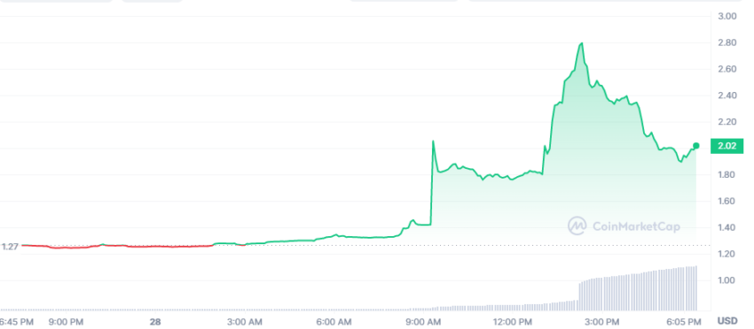 Liquity(レンディングプロトコル)のステーブルコイン、LUSDの姉妹トークンであるLQTYは、バイナンスが3月1日にLQTYをイノベーションゾーンに上場すると発表した後、取引量が劇増、103%上昇し2.78ドルに達した。