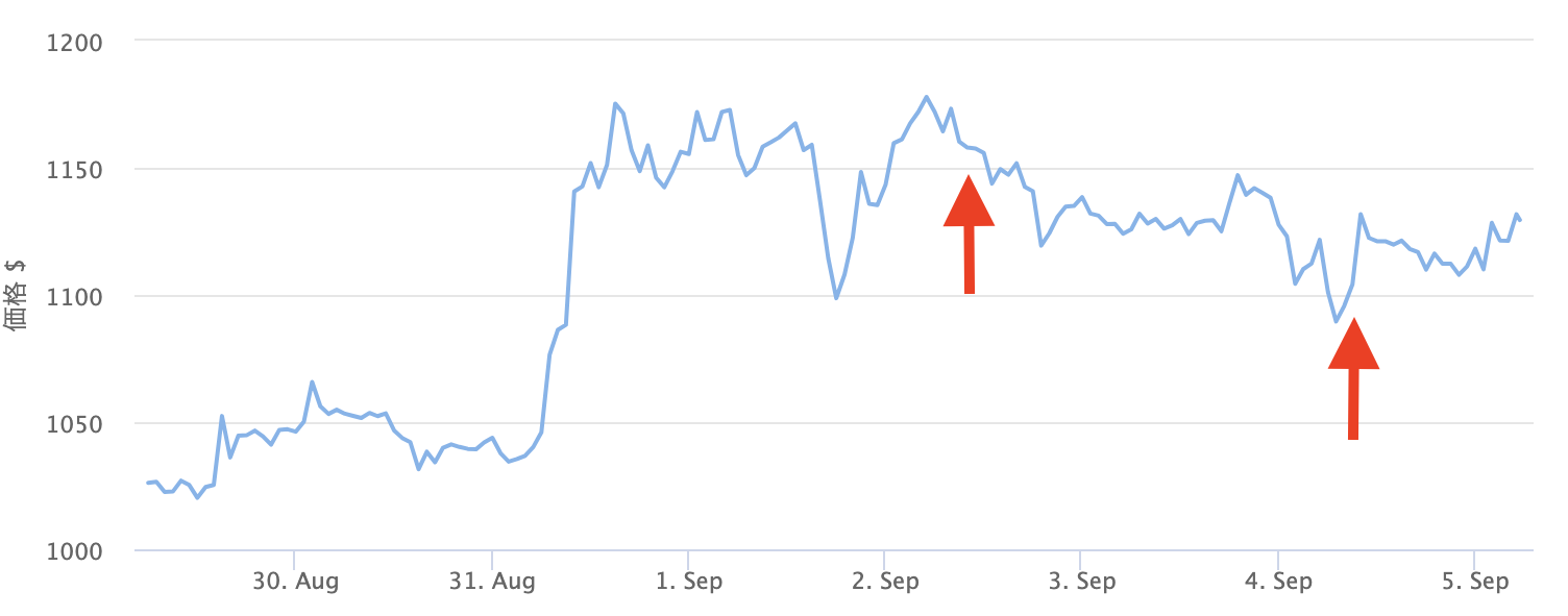 クジラが取引所ウォレットからセルフカストディ・ウォレットに資金移動を行う行為は、該当する暗号通貨の長期保有を示唆し、価格に好影響を与えるケースが多い。同日、MakerDAO価格はクジラの動きに反応し、約4%反発した。MakerDAOの現在価格は前日比1.3%増の1127ドル。なお、直近1週間で10.4%上昇している。