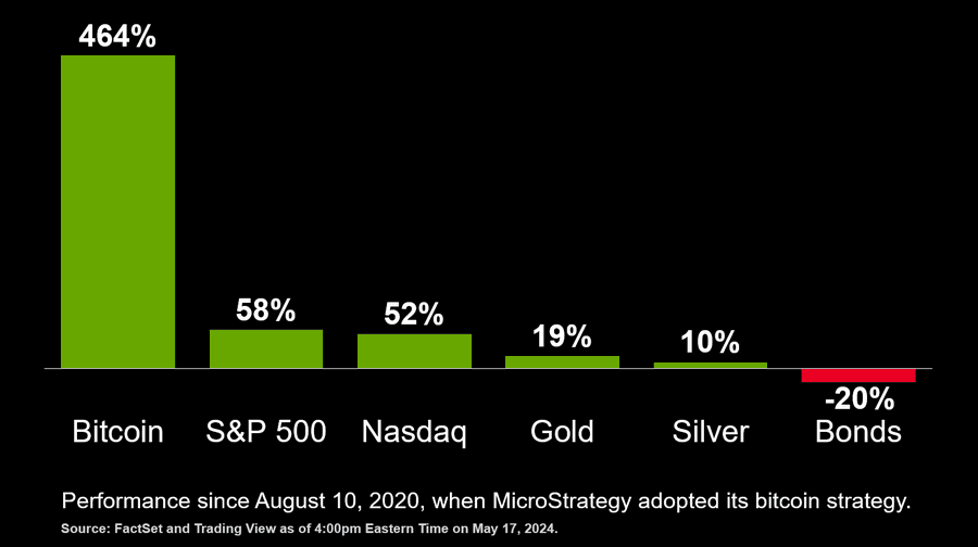 「メインストリームの投資家は、暗号資産クラスが存在する今、5%か10%を暗号資産クラスに振り向けるかもしれないが、ビットコインはその60%か70%を占めるだろう」とセイラー氏は指摘する。