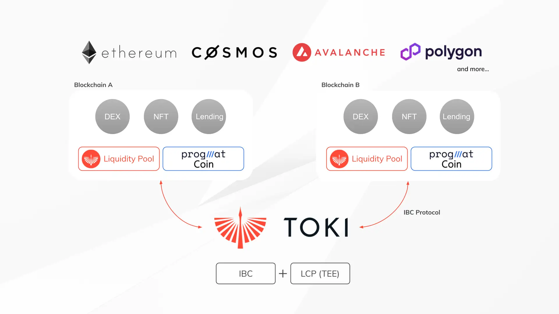 TOKIは、各ブロックチェーンに対し流動性プール提供。コスモスの相互運用通信プロトコル「IBC」、Datachainのクロスチェーンブリッジソリューション「LCP」を活用しブロックチェーン間接続を行う。これにより、ブロックチェーンを通じてスワップ、支払い、融資などに活用が可能となる。