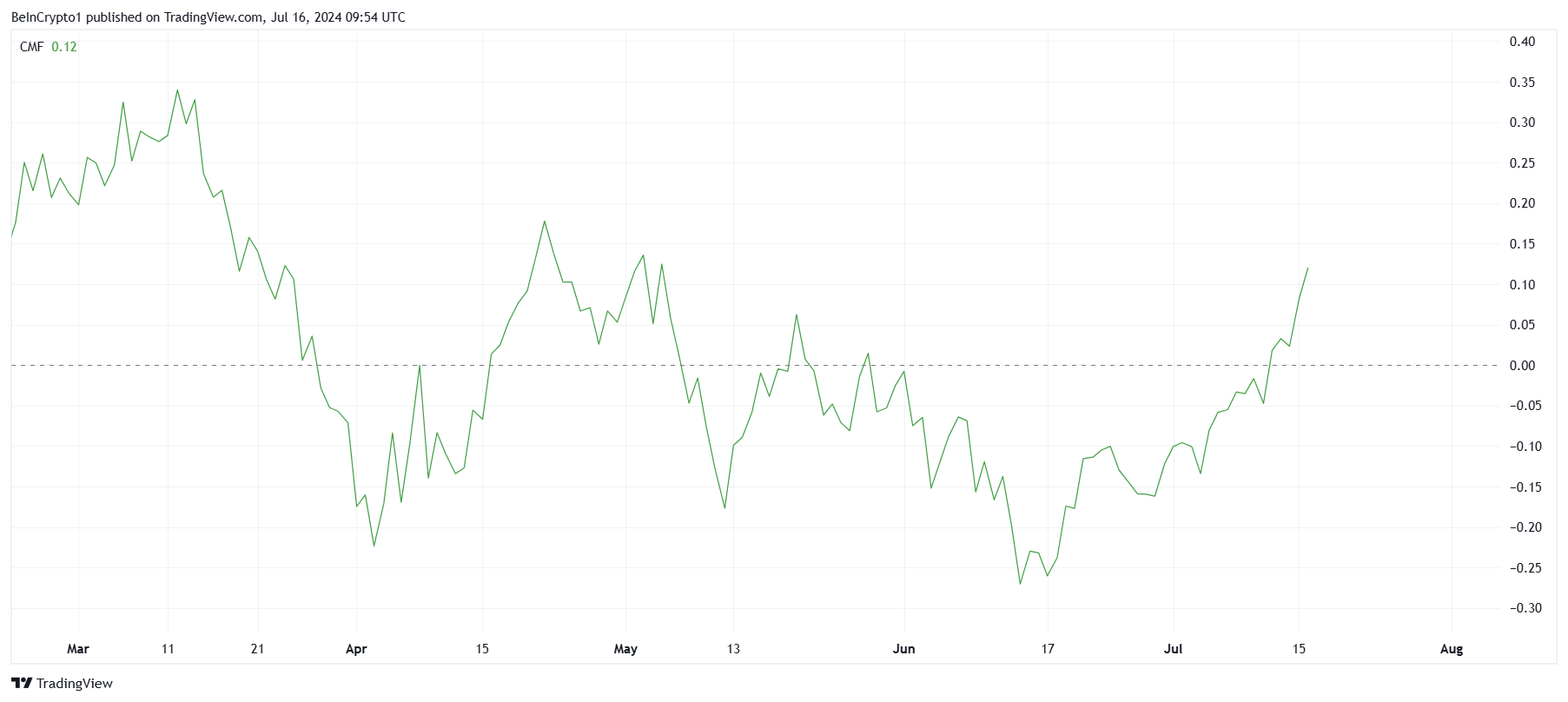 最近の急騰は、価格の上昇をもたらし、NEARに利益をもたらすだろう。チャイキンマネーフロー(CMF)の急上昇は、NEARへの資金流入の急激な増加を示している。この資金流入の急増は、NEARに対する投資家の関心と信頼の高まりを反映し、NEARに対する需要が増加していることを示す明らかな兆候である。