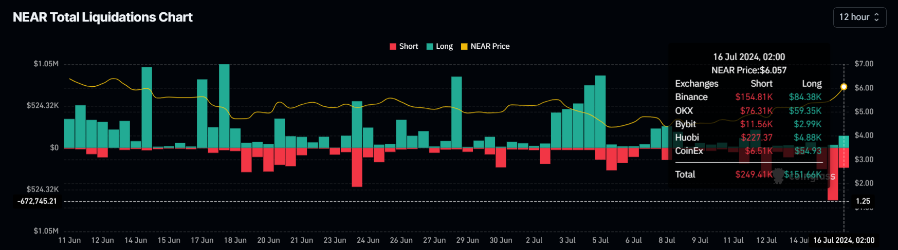需要の高まりに加え、アルトコインのショート清算は過去24時間でほぼ100万ドルに達している。このかなりのレベルの清算は、空売りがポジションをカバーすることを余儀なくされているため、NEARを取り巻く市場の激しい動きを示している。