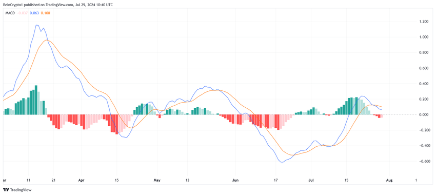 NEARの価格は、市場の状況の変化と投資家のセンチメントにより、横ばいまたは下落する可能性がある。移動平均収束ダイバージェンス(MACD)インジケータは最近、弱気クロスオーバーを示し、NEAR投資家の売り圧力の高まりを示唆した。