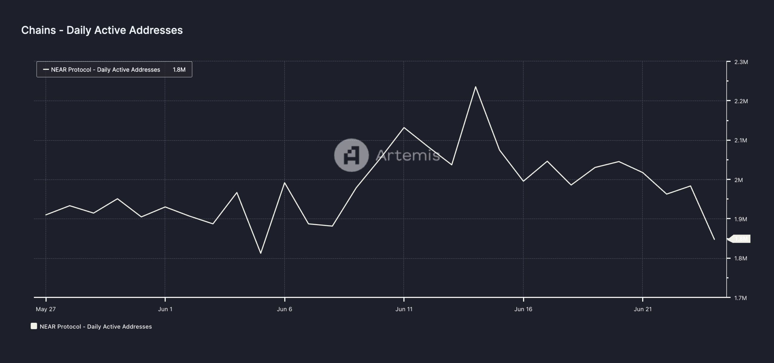 6月14日の220万件をピークに、Nearのデイリーアクティブアドレスは18%減少している。