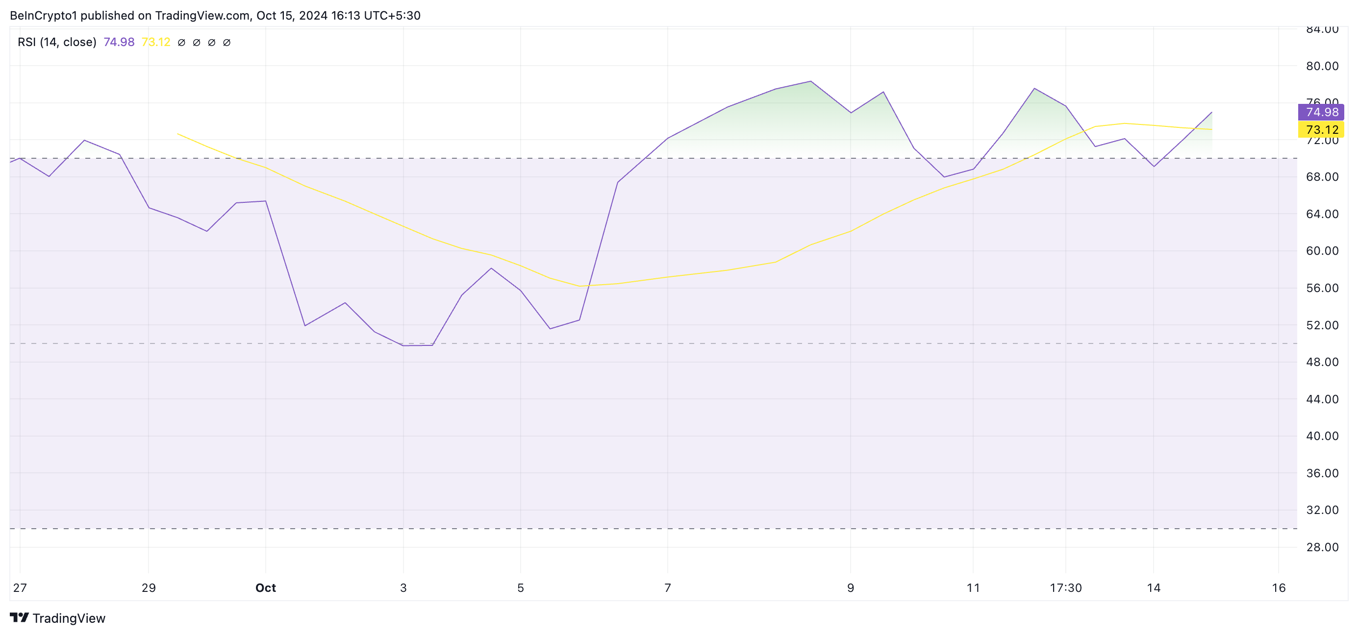 Sponsored現時点で、NEIROのRSIは74.93にあり、ミームコインが間もなく利益を減らす可能性があることを示しています。